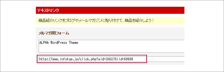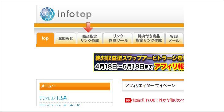 ALPHA WordPress Themeは、インフォトップに登録しています。アフィリエイターページへログインします。インフォトップのアカウントをお持ちで無い方は、まずは、こちらからアフィリエイター登録してください。