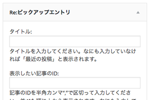 指定した記事のタイトルを表示するシンプルなウィジェットです。例えば「おすすめ記事」「初めての方はこちらの記事をお読み下さい」「○○特集はこちら」などの使い方が考えられます。