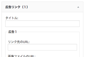 広告を管理するウィジェットです。リンク先のURL、画像、名前、説明文を設定できます。設置する場所によって、画像のサイズやレイアウトが自動で調整されるようになっています。