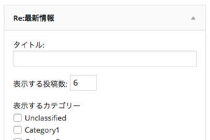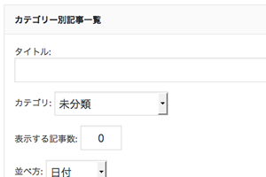 カテゴリー別記事一覧では表示したいカテゴリーの他に、表示する記事数、並べ方を設定することができます。特定のカテゴリーの記事のメニューを作りたい場合に便利なウィジェットです。