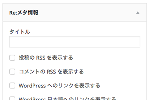 標準のメタ情報ウィジェットで表示される、投稿のRSS、コメントのRSS、WordPress.orgへのリンク、WordPress 日本語へのリンクをそれぞれ個別に表示・非表示を設定できます。