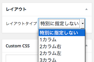 オプション画面で設定するサイト全体のレイアウト設定とは別に、投稿ごと、固定ページごとに1カラム、2カラム右、2カラム左、3カラムを設定できます。