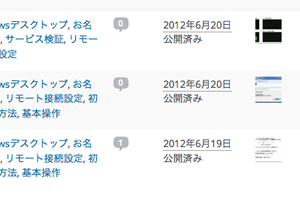 ダッシュボードの投稿一覧、固定ページ一覧のテーブルに、「サムネイル」の列を追加しました。記事を編集する際に目的の記事に辿り着きやすくなります。