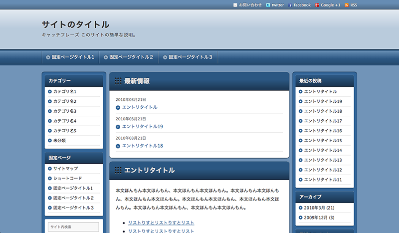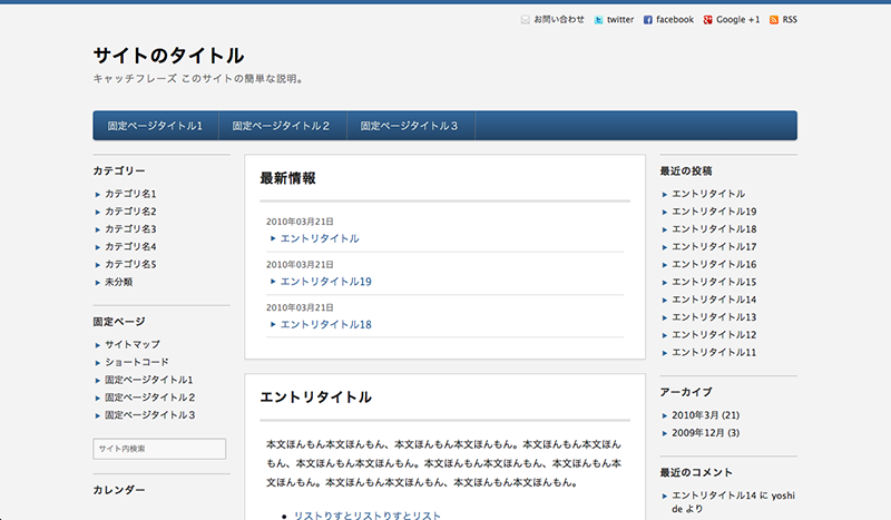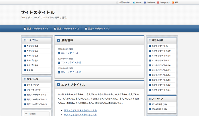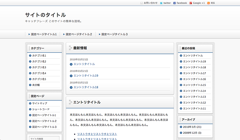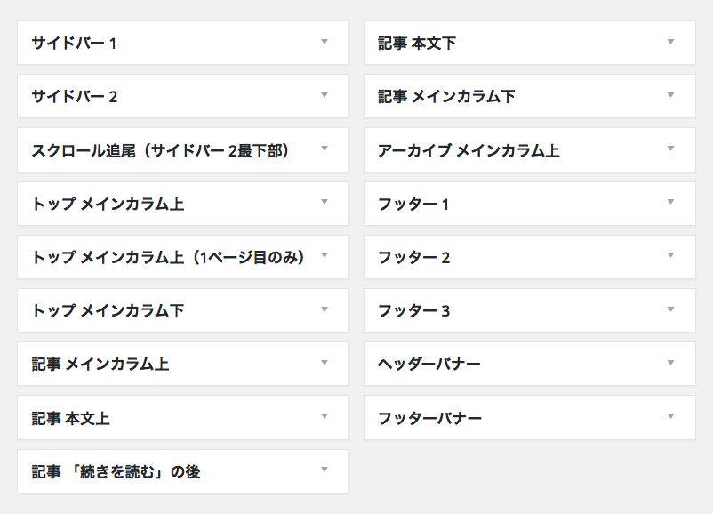 コンテンツ掲載に関する様々なニーズに対応するため、19個ものウィジェットエリアを用意しています。
